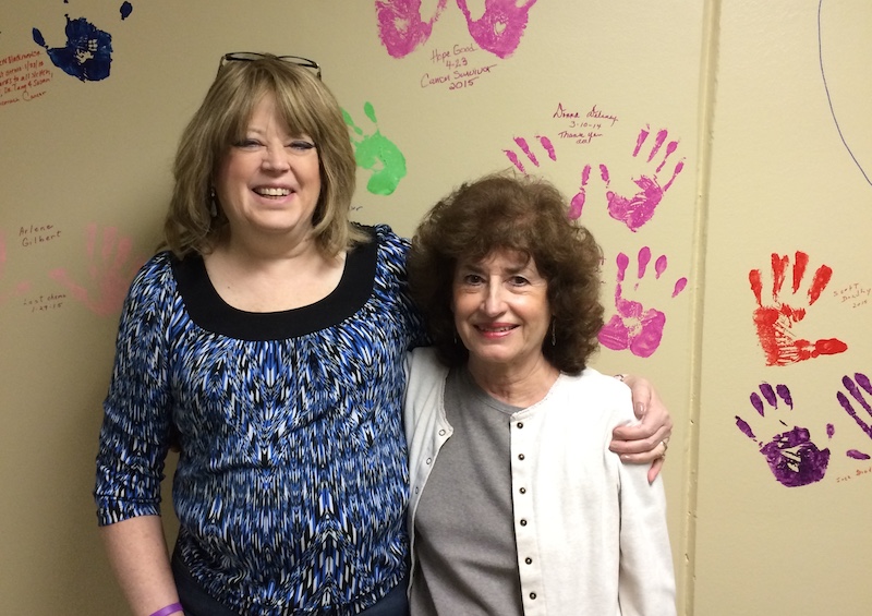 Hope Good and Melanie Wright at Sletten Cancer Survivor wall